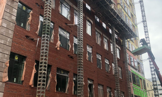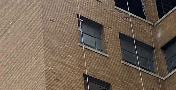 Our team completed a full restoration including caulking, tuckpointing, washing, brick replacement, new penthouse windows, and installation of I-beams, lintels, and structural steel on the 8th floor. Years of roof leaks had corroded the original steel, so damaged sections were removed and replaced to restore the building’s strength.